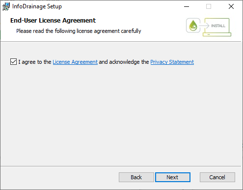 - Double-click the installer to begin the InfoDrainage installation process. Click