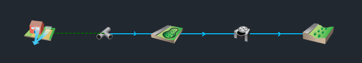 A Flow Train or Flow Network is created by clicking on Plan to place items automatically joined by connections. To construct a site you have two ways of placing and joining items: