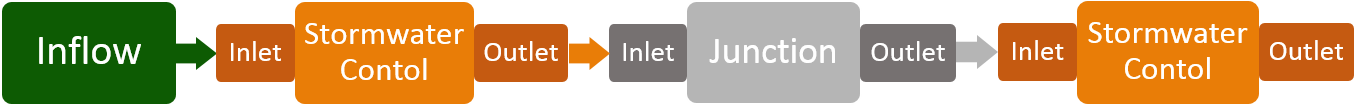 Your first click on an empty space in Plan will, by default, place an Inflow item. The type of Inflow placed will be the one selected on the Build ribbon (and on the Toolbox) and displayed as the Next Item. At any time before the first click you can select a different Next Item. When an Inflow is placed you will not be asked, or allowed, to draw the Inflow area. The area or value must be added once the train is complete. A different item can be placed first also via the Plan right-click menu, the Build ribbon, or the Toolbox.
