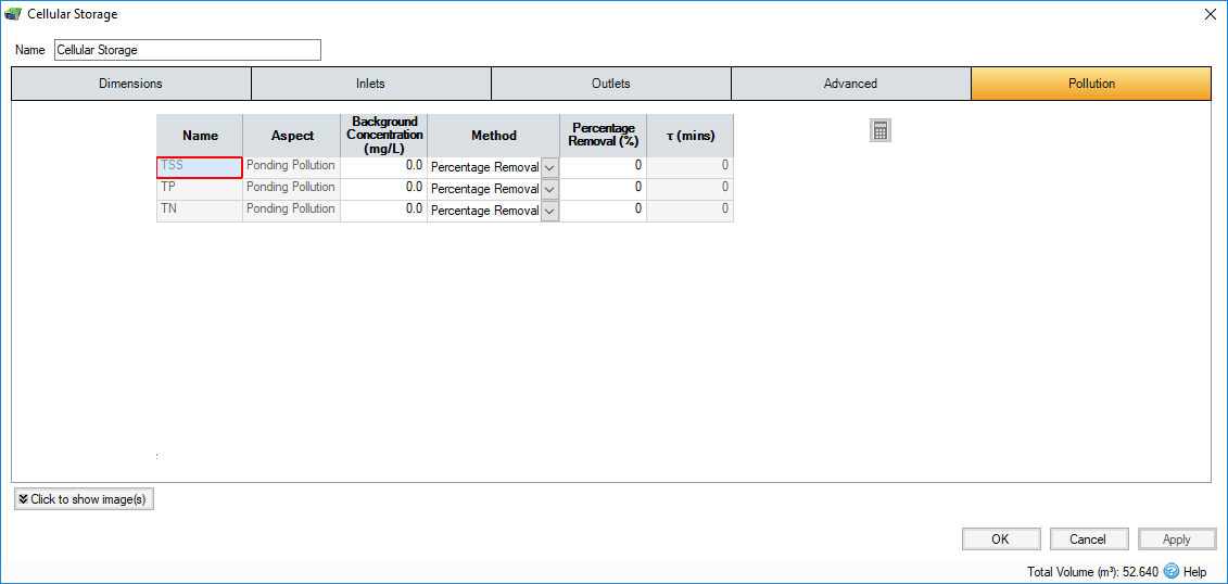 Percentage Removal - Available if Percentage Removal entered. The value entered will be deducted from the Inflow into the system.