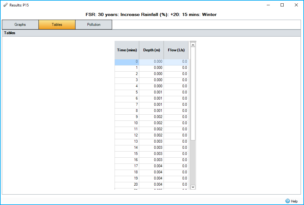 Flows - Provides a graph showing the flow into/from the Inlet against time.