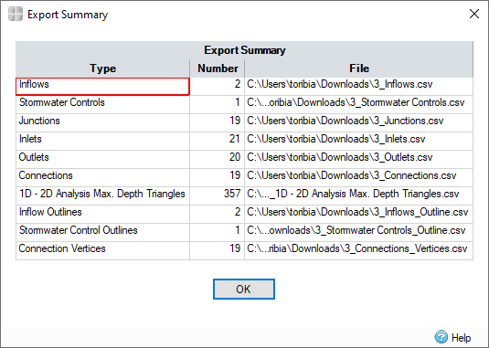 For Inflows, Stormwater Controls, Land Uses, and Soil Types an extra file/sheet is produced, postfixed with _Outline. This file contains all coordinates of the polygons including a final closing coordinate that matches the initial coordinate.
