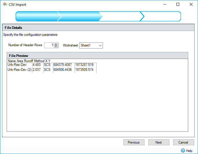 The CSV Import Wizard facilitates the import of InfoDrainage features from Text or Excel format files.