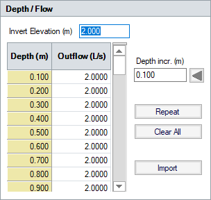 Alternatively the depths and outflow rates can be entered freehand into the table.