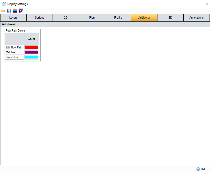 Open File - Locate and open an *.iddsx file that contains pre-set values for the Display Settings tabs.