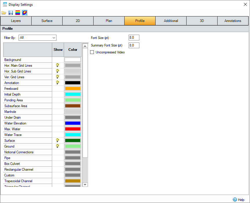 The table dictates the colors of the items shown on profile view, both in the primary window and on the Plot Profile form.