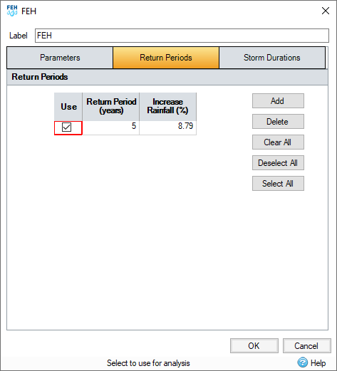 A set of Storm Durations and run times must be specified for the analysis to run back to back.