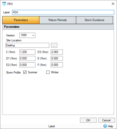 InfoDrainage supports two UK rainfall methodologies. The Flood Studies Report (FSR) was published in the mid-1970s and used rainfall from 1941 - 1970. The Flood Estimation Handbook (FEH) was published in 1999 and used rainfall from a dataset between 1961 - 1990.
