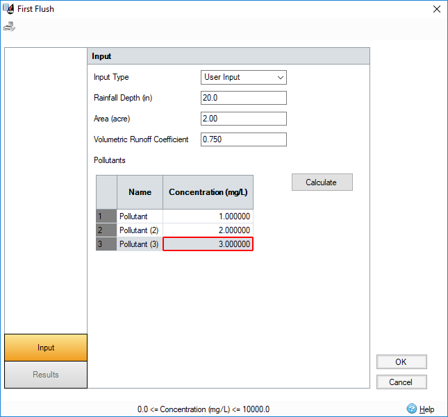 First Flush is the initial surface runoff from a rainfall event. Pollution wash off for impervious surfaces is likely to be at a higher concentration for this initial period and is referred to as the ‘Pollution Shock’. The purpose of the First Flush Calculator is to allow users to establish these pollution values for an initial depth of water.