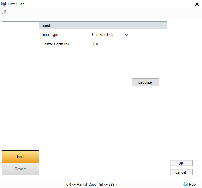 2. If Use Plan Data is selected then the user only enters a value for rainfall depth, P.