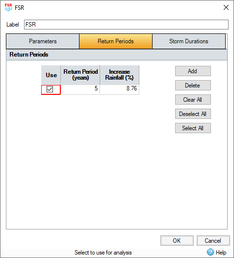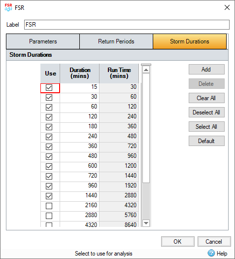 A set of Storm Durations and run times must be specified for the analysis to run back to back.