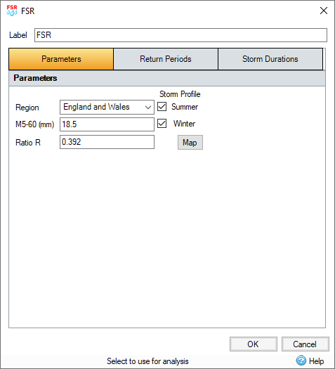 InfoDrainage supports two UK rainfall methodologies. The Flood Studies Report (FSR) was published in the mid-1970s and used rainfall from 1941 - 1970. The Flood Estimation Handbook (FEH) was published in 1999 and used rainfall from a dataset between 1961 - 1990.