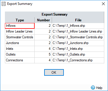 At the final step on the wizard, pressing the 'Export' button will perform the export and create the GIS file(s). When this operation is complete, you will be shown a summary of the objects exported.