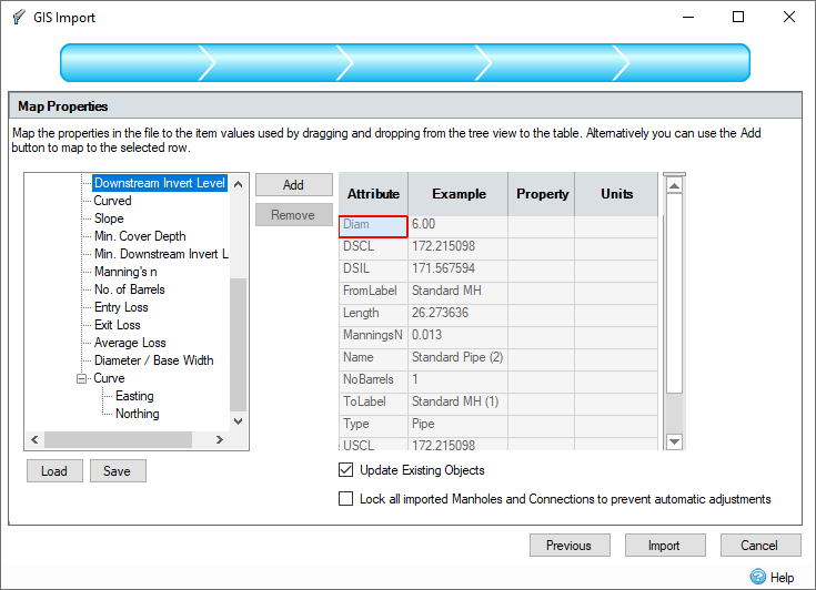 Units - Select the units that the GIS data being loaded is in so that it can be converted for use with the current Unit Selection within the software.