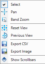 Toggle Scroll Bars - Scroll bars may be added to most graphs by selecting the Toggle Scrollbars option. These can be used to move around the graph more accurately than the Pan option. This can also be used to turn off the scroll bars.