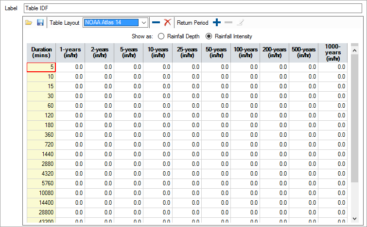 This is the label given to the IDF data that is then shown on the Design Criteria form. It can be used to give the IDF data a suitable label. i.e. 5 year return period.