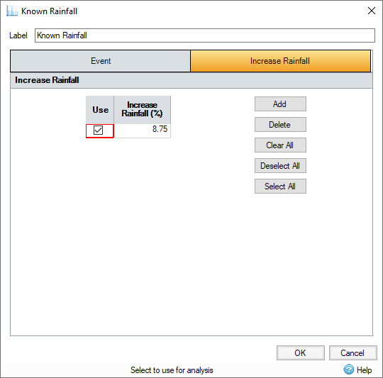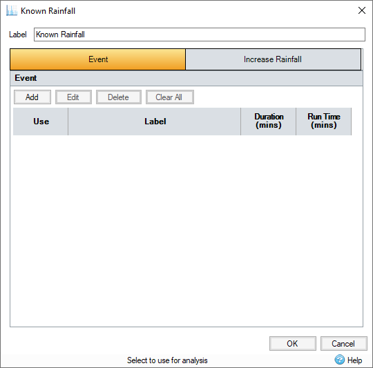 Known Rainfall allow the flexibility of analyzing unique hyetograph data and historical rainfall gauge data.