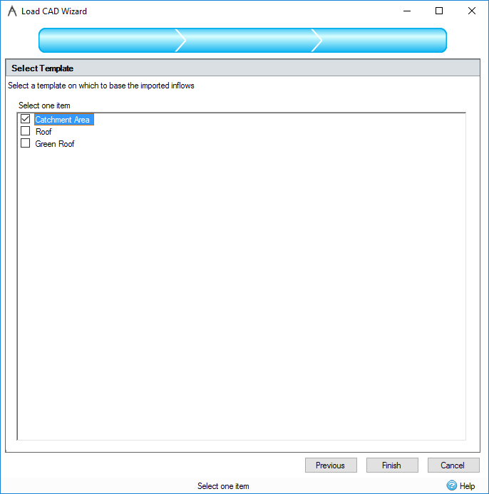 When using the Load CAD Wizard to load areas of either stormwater controls, inflows, or Land Uses, a third step will appear in the wizard. This step allows the selection of a template which the imported areas will be based on.