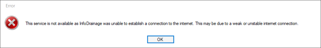 For example, if internet connection is interrupted whilst attempting analysis the following message will be displayed: