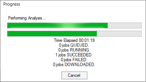 The simulation progress form is displayed upon a request to perform 1D or 2D analysis with cloud analysis available. See File Preferences to enable this option.