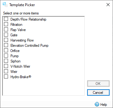 Allows you to select one or more outlet types for your selected junction. Items selected will be displayed in the Control List of the Control Calculator.