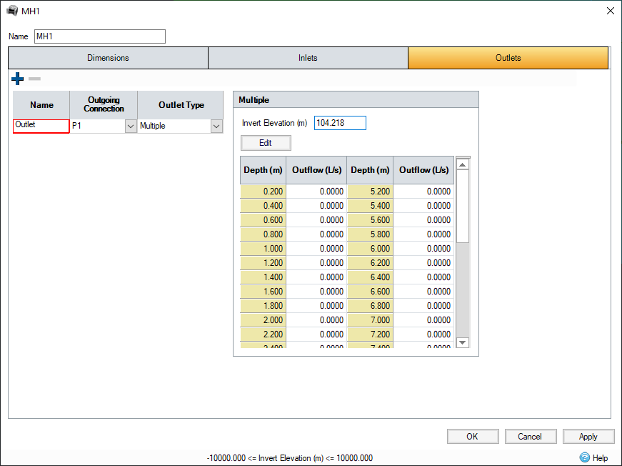 The Multiple Outlet option allows one or more Outlet flow controls to be combined as a single outlet location.