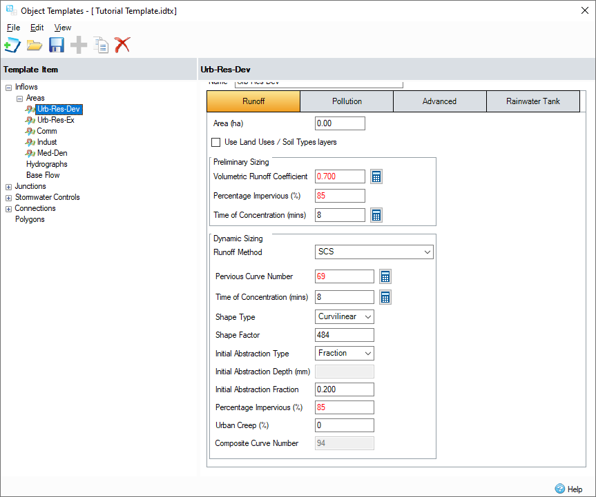 Object Templates can be created to automate the design of Connections, Stormwater Controls - SWC, Inflows, Simple Junctions, Manholes, and Land Uses.