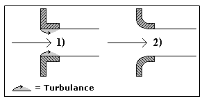A coefficient of 0.6 may be used for square edged inlets (see 1). The coefficient may be increased to 0.95 if the inlet is well rounded using a rounding radius 15% of the orifice diameter (see 2). It should be decreased to 0.5 if the orifice is formed by a pipe protruding into the flow.