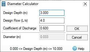 Diameter - Enter the diameter of the orifice. If you are working to a maximum allowable discharge a Calculator is provided to help size the control.