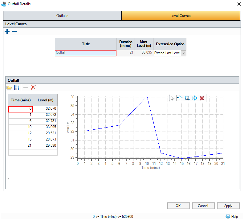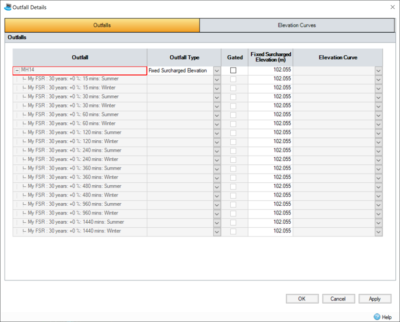 Once the Outfall Type has been selected the actually value can be varied on a Storm by Storm basis as needed. This can be useful if the elevation will be dependent on the storm being analyzed.