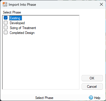 Note: InfoDrainage 2027.0 includes a technology preview of a new Import Into Phase feature.