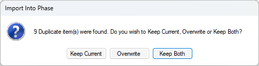 An automatic phase type conversion is implemented during import. A storm phase is converted into a sanitary phase when importing into a sanitary phase. A sanitary phase is converted into a storm phase when importing into a storm phase.