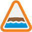 When the current storm is being animated, the Plan can display a warning triangle over a Junction or SWC when the current water level enters the freeboard (Flood Risk, SWC only) or Floods. The display of the warning triangles is controlled by the flood indicators view option under the Results section of the Tree View. The images used are:
