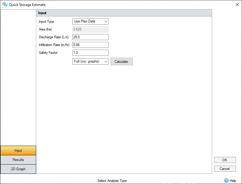 Quick/Full (inc. graphs) - Both these options produce the range of results with and without infiltration, however the Full option also produces the 2D graphs.