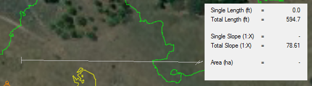 To measure a length or slope, select the Ruler tool, and left-click anywhere on the Plan window. Continue left-clicking to add points, and right-click to end the current line.