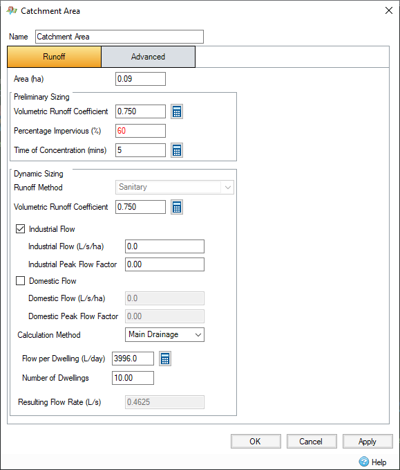 Calculation Method - The method used to calculate flow. Available options are Discharge Unit and Main Drainage.