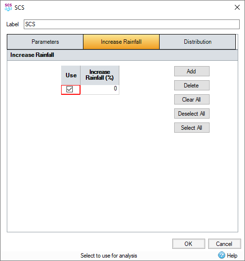 Use the controls described below to generate SCS rainfall to be run by the analysis.