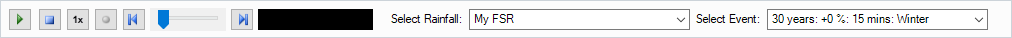 The Results status bar provides both the video controls and storm selection combo box and appears at the bottom of the application once results have been generated.
