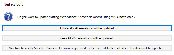 Data from multiple CSV/TXT/Excel and/or CAD files can be merged together rather than replacing the existing information. This allows a complex surface to be created from tiles of LIDAR data for example, or from layers in different CAD files.