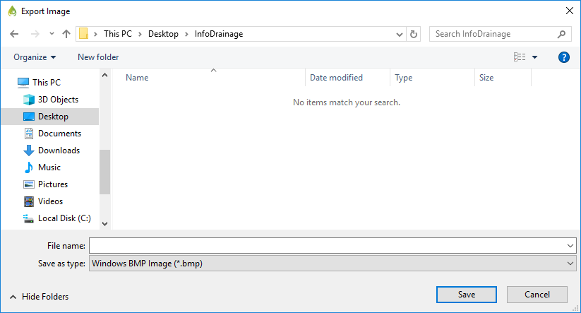 In the Windows dialog that opens, navigate to the folder where you want to save the exported image file, and select the appropriate image format.