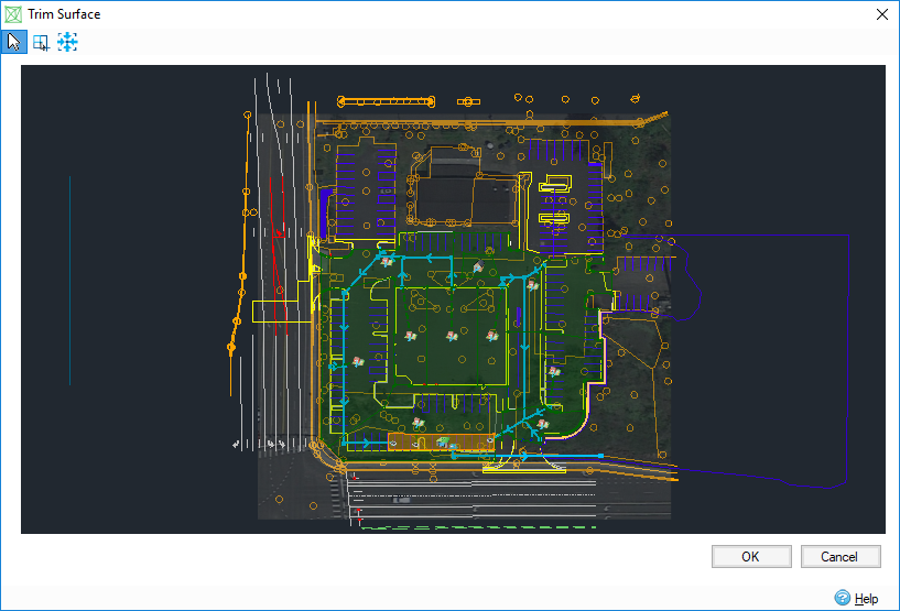Trim Surface is used to define the boundary of the surface loaded in the Surface Data form to remove information that is not necessary by the design. I.e. if a large LIDAR tile has been simply loaded and it only requires a certain part of it.