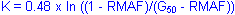 For the required return period t compute the ratio of the urban and rural growth factors from the following equation: