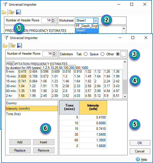 The Universal Importer allows a user to import data to a form from a file, where the contents of the file is in an unknown format. For example, rainfall data may be supplied to a user as a spreadsheet; the user can import the rainfall data using the Universal Importer by defining the meaning of each column.