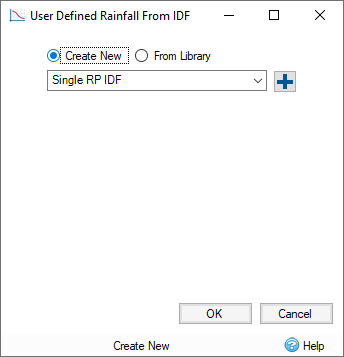 Create From IDF - Allows you to generate a User Defined Rainfall from either a Single RP IDF, or a Table IDF.