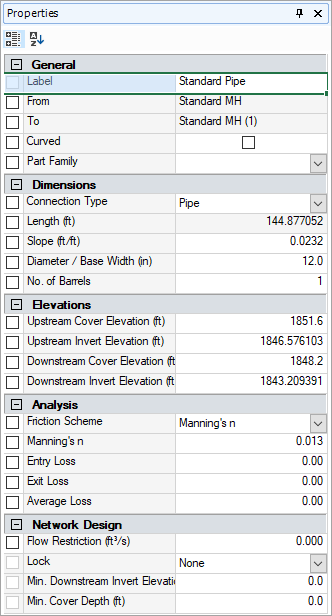 Use a range of preliminary sizing tools to quickly assess your site and complete sizing calculations. Automatically size your pipe networks and create Full, HEC-22, or Methode de Caquot pipe sizing reports. Quick and handy analysis of runoff across the site and easy estimates of the treatment volume needed. For more information about this topic, go to Preliminary Sizing Ribbon.