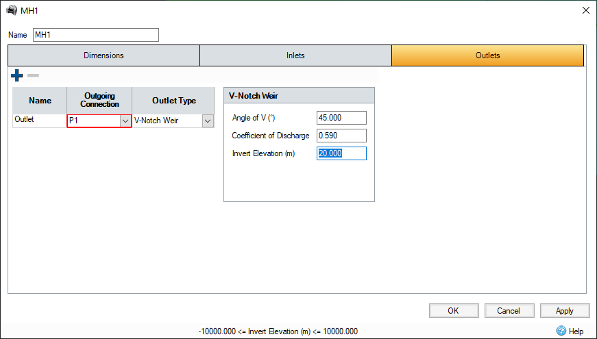 Invert Elevation - The invert elevation of the Weir.
