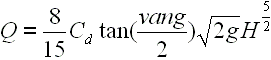 V-Notch Weir flow is calculated using the following formula: