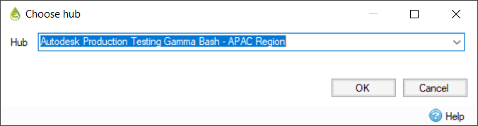 To use the cloud simulation functionality of InfoDrainage, you will be prompted to choose a hub from a selection of available cloud hubs. This hub will then be utilized upon subsequent calls to the cloud for rainfall or runoff calculations. To enable cloud simulation, see File Preferences.