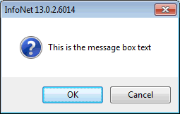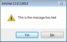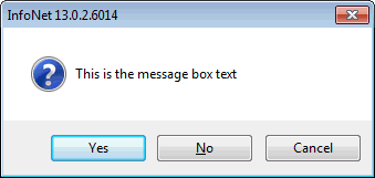 'This is the message box text','YesNoCancel','?',false)