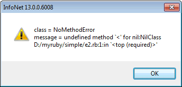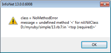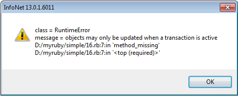 To demonstrate this, enter the following into a new file called lesson2_2.rb and run it inside an InfoWorks product, such as InfoAsset Manager, as before: